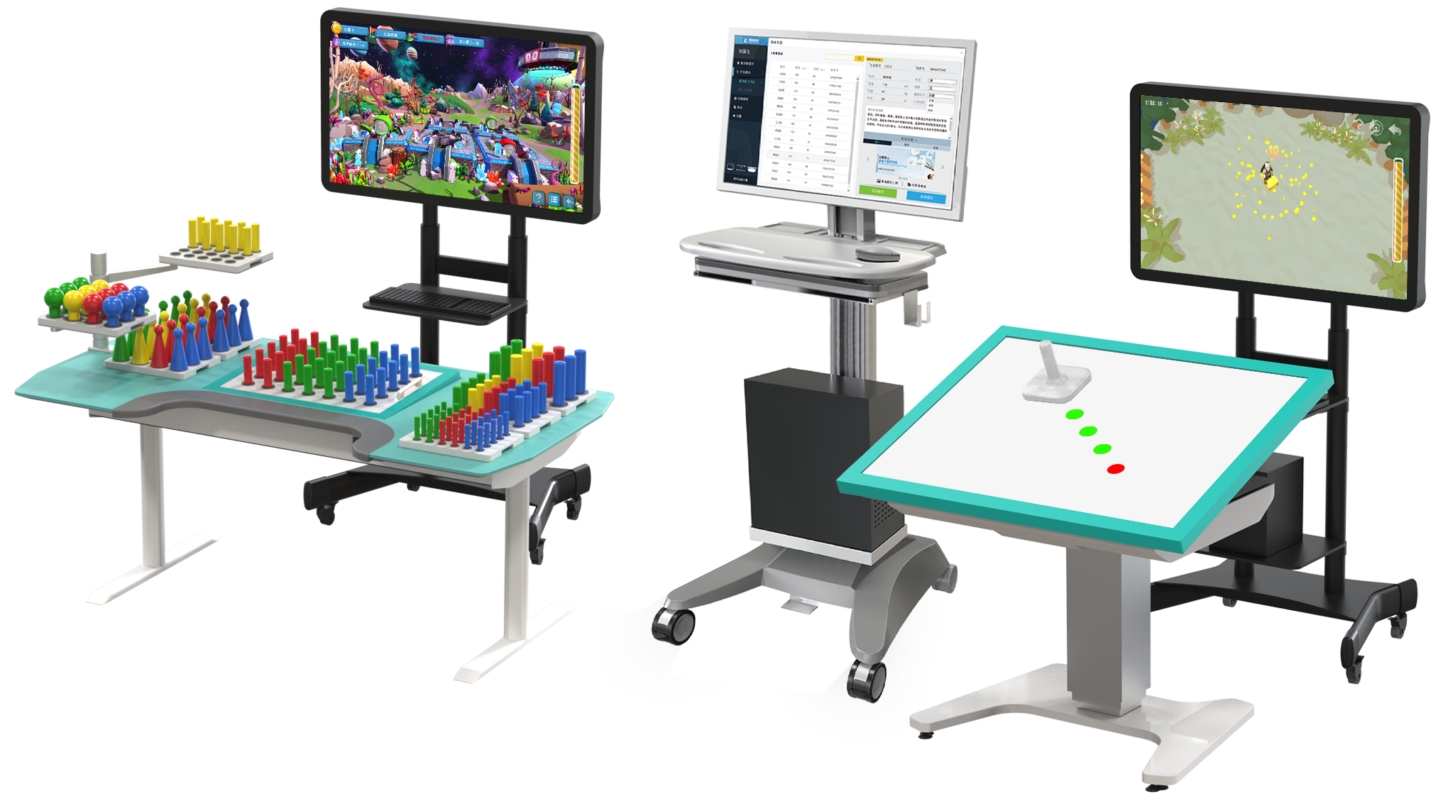 (用于上肢粗大運動及手精細功能的精準性評估與訓練,同時可改善認知能力。) 反應時情景互動康復系統